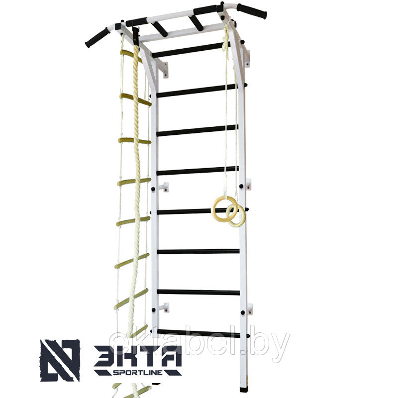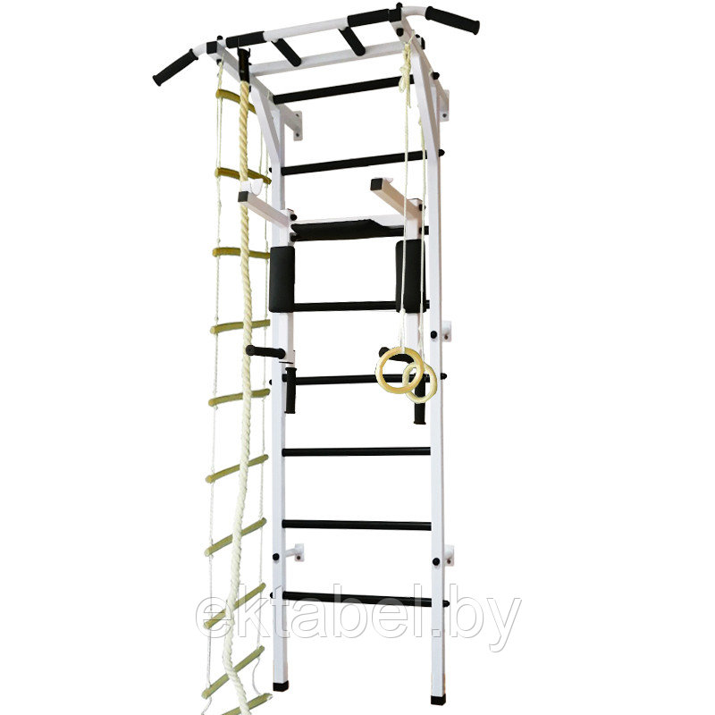Для комфортного использования и безопасности пользователя снаряд оснащен резиновыми нескользкими ручками, металлические ступени покрыты пластиком. Комплект включает в себя турник и лестницу. При желании можно доукомплектовывать шведскую стенку узким хватом, а также веревочной лестницей, гимнастическими кольцами.