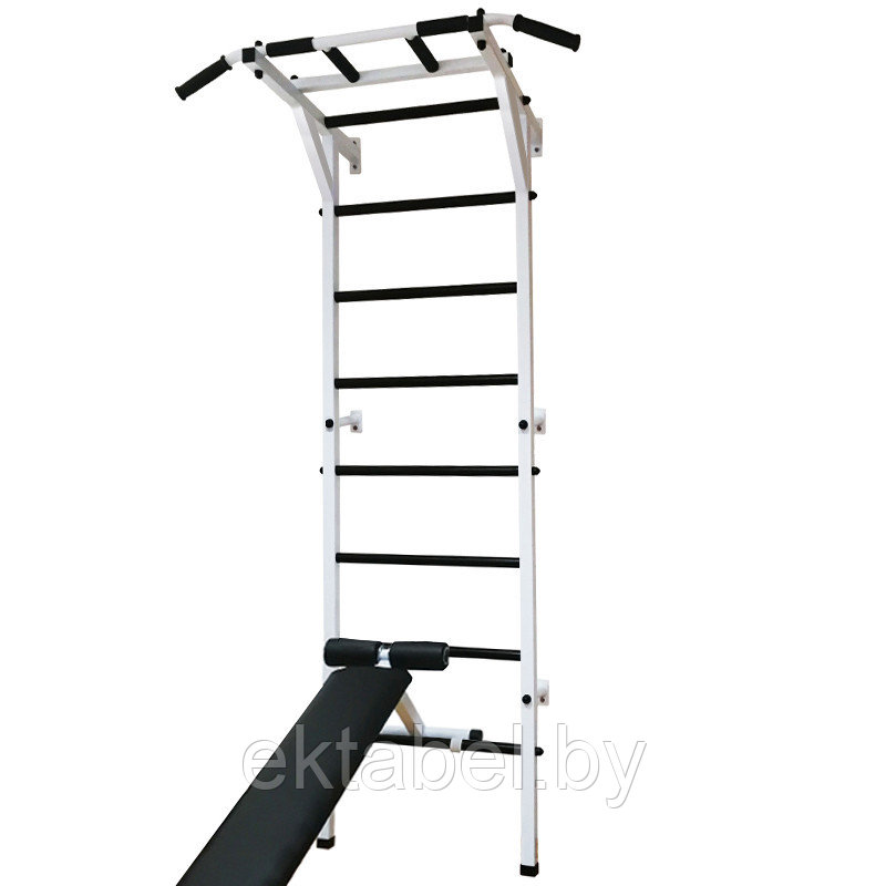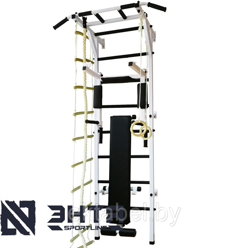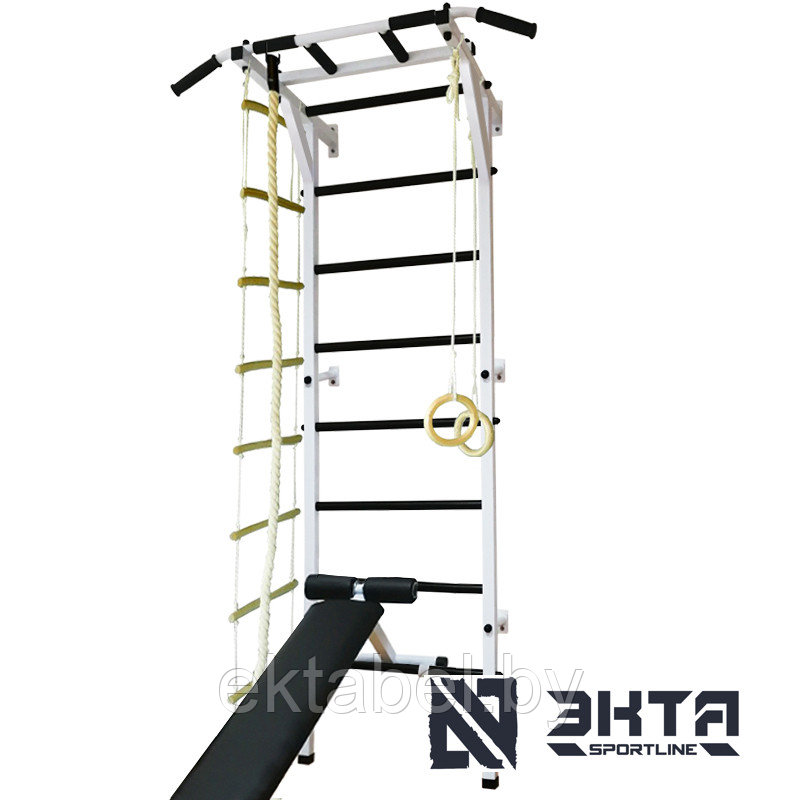 Шведская стенка Экта NL-3+ с детским навесным оборудованием (Кольца, канат, лестница верёвочная) предназначена для комплексного развития тела в домашних условиях. Турник, лестница, брусья и скамья, входящие в комплект, создадут маленький, но настоящий спортзал прямо у Вас дома.