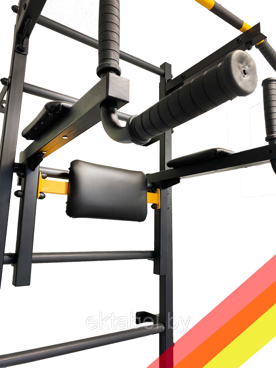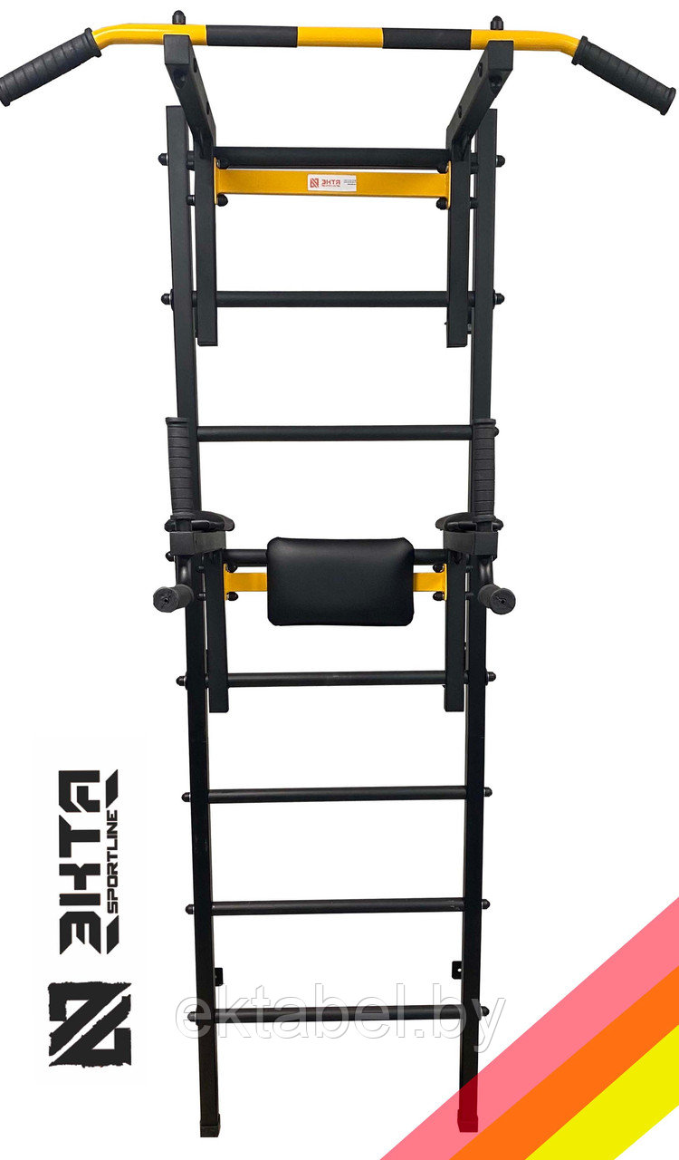Универсальный спортивный комплекс Спектор, оснащён съёмным турником регулируемый по высоте. Изготовлен из металлического профиля 40х40 мм. Крепится к стене в шести местах.