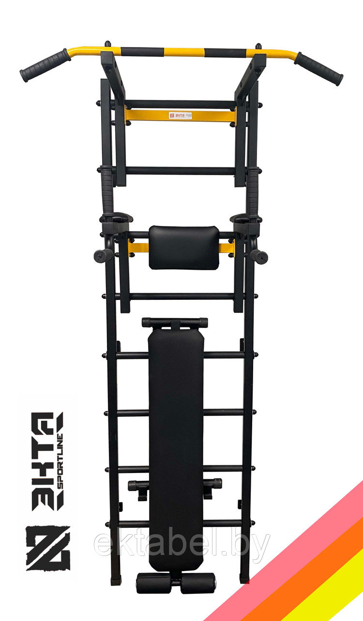 Лестница гимнастическая, турник съёмный, брусья/пресс, скамья.